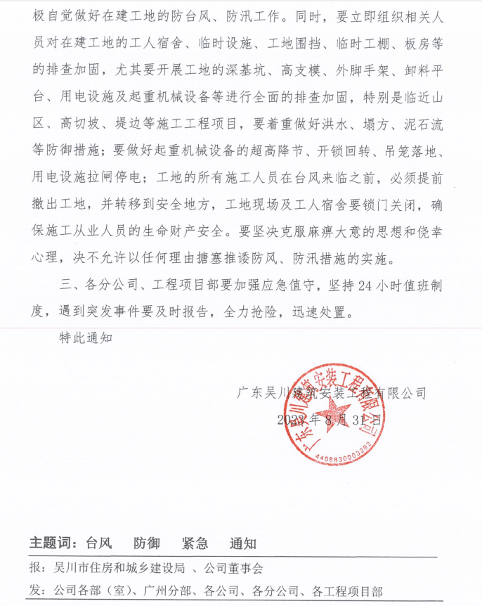 關于做好今年第9號臺風“蘇拉”防御工作的緊急通知