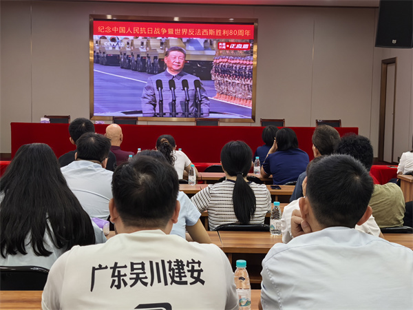 9月3日上午,公司總部全體員工在公司禮堂集中觀看紀念中國人民抗日戰爭暨世界反法西斯戰爭勝利80周年大會直播。